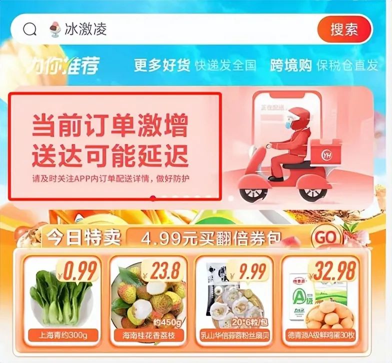 4月23日晚上,住在朝阳的小袁在线上购物遇阻,平台提示:当前订单激增,送达可能延迟。但随后她去朝阳区呼家楼的一家超市采购时发现,货物还是很充足的,自己想要的物品都买到了。