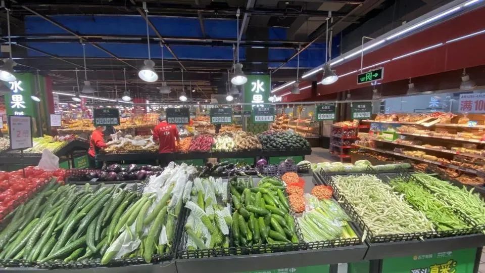 4月24日下午在北京朝阳区京客隆超市针织路店,人流量如往常一样多,瓜果蔬菜一应俱全,没有空置的货架。询问了工作人员最近供货是否稳定他表示,“没有断供,价格也没变,不做特价的话跟之前都是一样的。”同日下午,在北京朝阳区万惠商场金台路分店的超市中,同样了解到各种货物一应俱全。