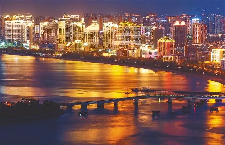 近年来,海南大力推进国际旅游消费中心建设,吸引境外消费回流,培育旅游消费新热点,旅游消费提质升级向全天候发展,璀璨的夜景正是夜间经济繁荣的见证。
