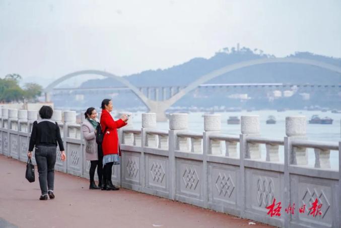 在河西防洪堤达标加固工程现场,长约6公里的沥青绿道与浔江相互映衬。这处风光旖旎的滨江步道,已成为健身爱好者、摄影“发烧友”的打卡地。