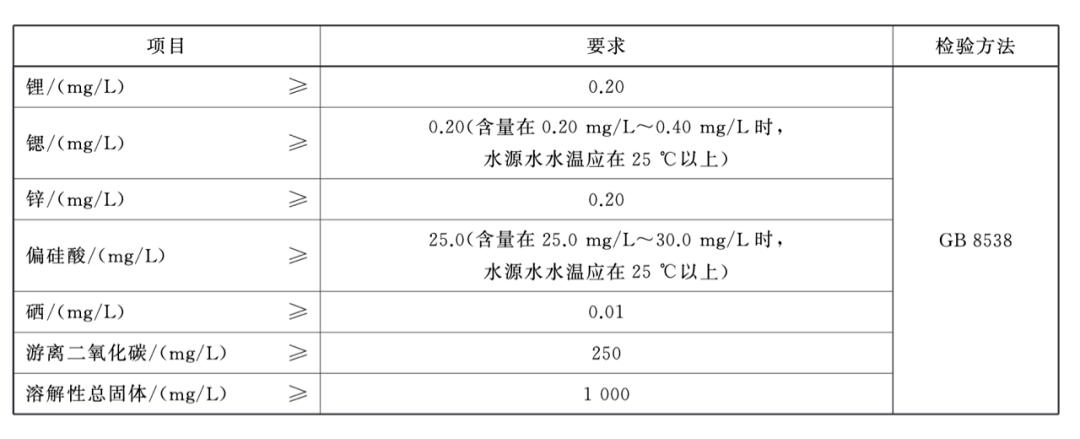 而且,即便是含有一点微量元素的矿泉水,其中的含量也很有限。按照国标《GB 8537-2018 饮用天然矿泉水》的标准,矿泉水中的矿物质成分需满足以下条件: