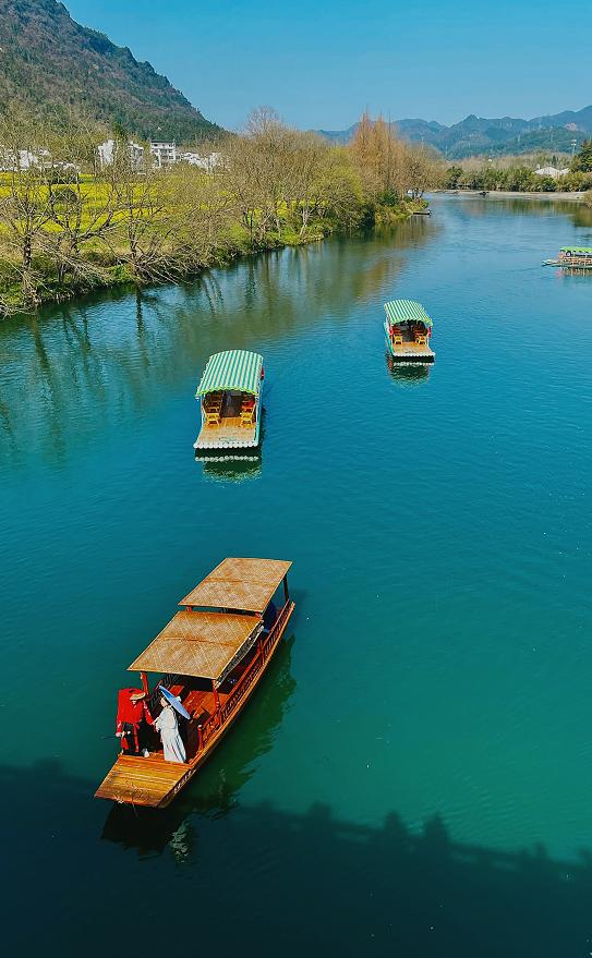 乘着竹筏,一面绕山,一面临徽派村落,天然太极,仿如一幅天然的山水画卷,是游览齐云山风景名胜区必选方式之一。