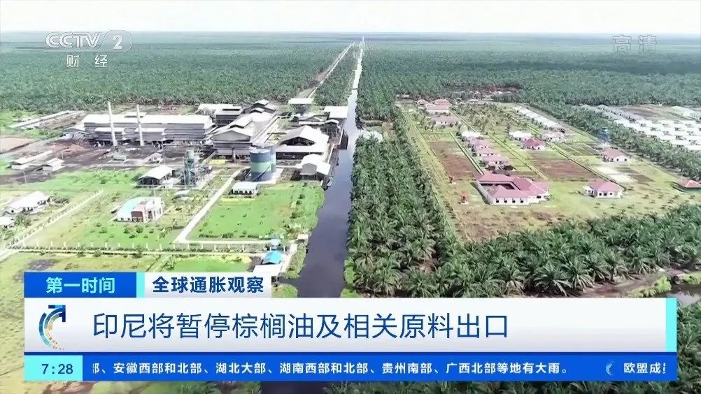 ● 印尼宣布暂停棕榈油出口。全球60%棕榈油产自印尼。