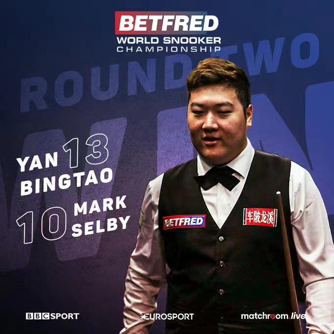 ● 2022斯诺克世锦赛,颜丙涛以13-10战胜卫冕冠军塞尔比晋级八强,接下来他将对阵马克-威廉姆斯。