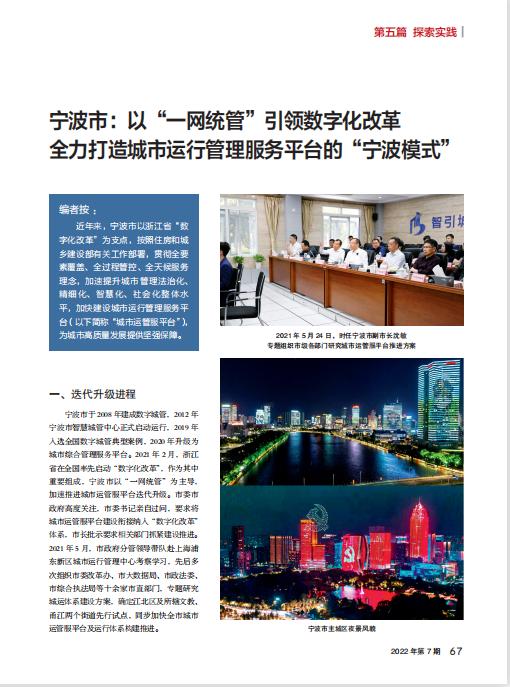 原标题:《城市运管服平台地方经验 ▎宁波市:以“一网统管”引领数字化改革 全力打造“宁波模式”》
