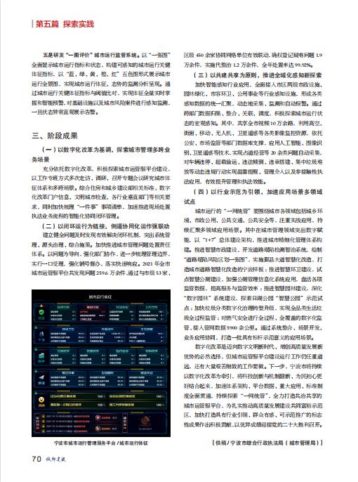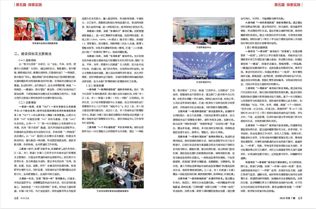 近年来,宁波市以浙江省“数字化改革”为支点,按照住房和城乡建设部有关工作部署,贯彻全要素覆盖、全过程管控、全天候服务理念,加速提升城市管理法治化、精细化、智慧化、社会化整体水平,加快建设城市运行管理服务平台(以下简称“城市运管服平台”),为城市高质量发展提供坚强保障。