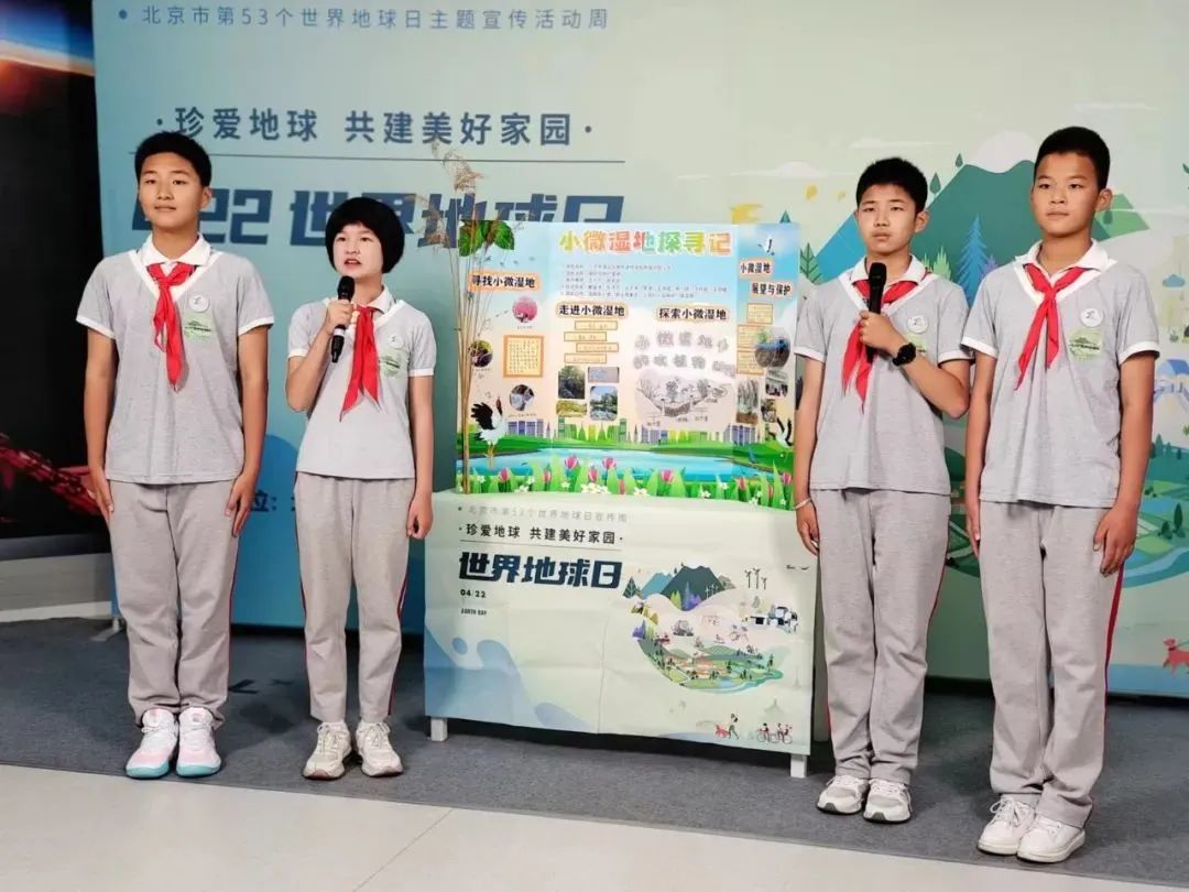 来自人大附中实验小学的学生为观众带来了情感充沛的原创诗朗诵,展现了他们保护地球、共建美好家园的愿景与决心。来自海淀教师进修学校附属小学的代表队,作为优秀代表在直播活动中与全网观众见面,介绍了项目式学习活动当中,对北京小微湿地的研究过程和结论,活动现场还为参与项目式学习的优秀学校颁发了证书。