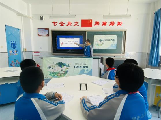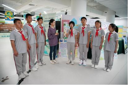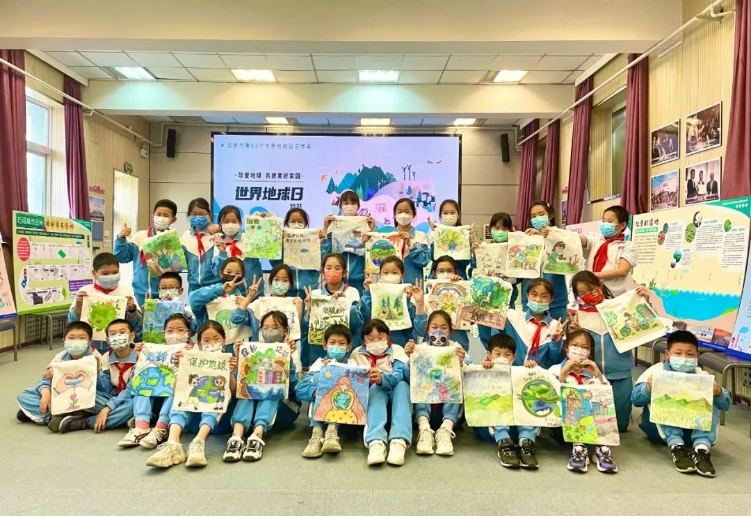 北京市朝阳师范学校附属小学的学生参与地球日进校活动