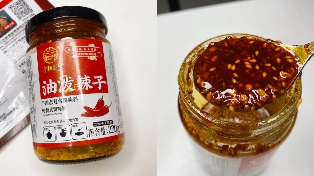 它家的辣椒油半瓶都是“干货”,很辣很香,一勺就很给力。