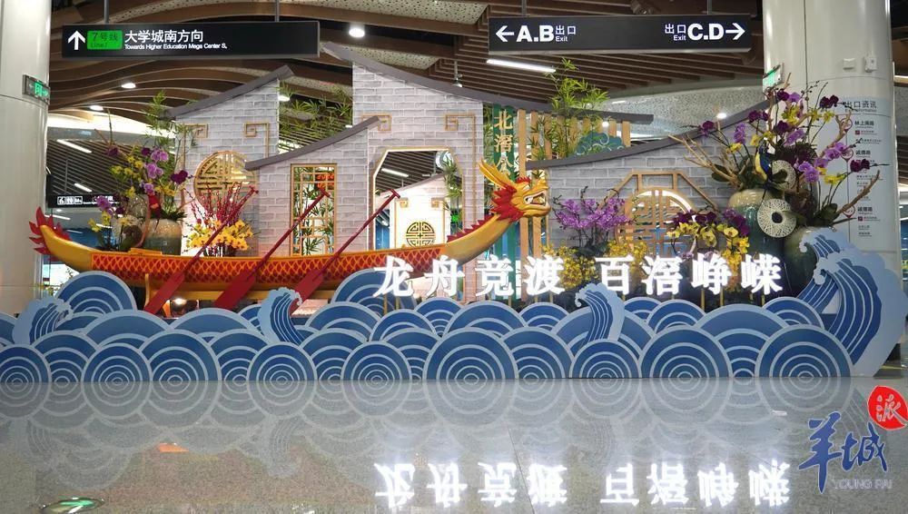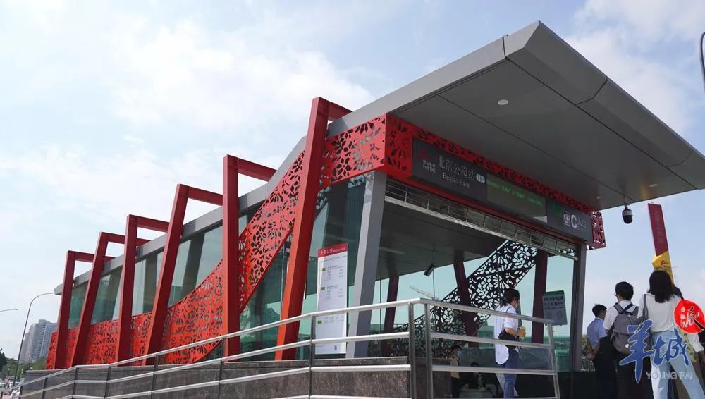 羊城晚报全媒体记者在北滘公园站出入口留意到,出入口飞顶与既有广佛线的设计不太一样,虽然都是采用红色玻璃盒子和剪纸风格,但该站的整体外形设计采用龙舟原型元素,像一条飘舞的红丝带。在陈村站,记者看到,站内融合了兰花和三字经的元素,通过把兰花柔美的曲线和三字经文字运用到公共空间设计中,既有历史文化内容又有时代生活气息。