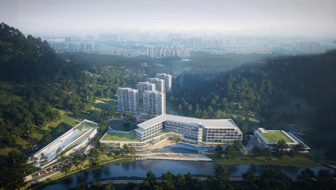 宁海县深甽镇21-3地块(原金海雅宝地块)项目毗邻深甽镇区,地处S38省道与西山线的交汇处,东南侧与南溪森林温泉一山之隔。项目北侧为住宅组团,南侧设置商业酒店,打造出一个静谧宜人的居住环境、滨水休闲的度假场所。