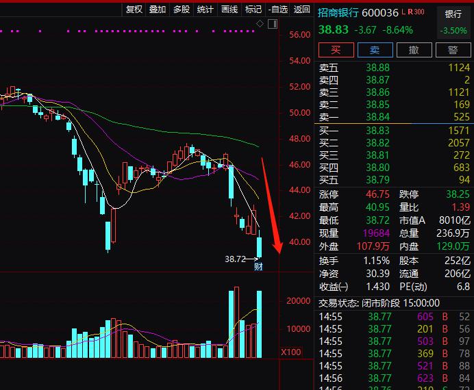 上周招商银行股价大幅波动,4月25日开盘又大幅下跌,A股大跌8.64%,H股更是跌10.28%。招商银行总市值9784亿元。