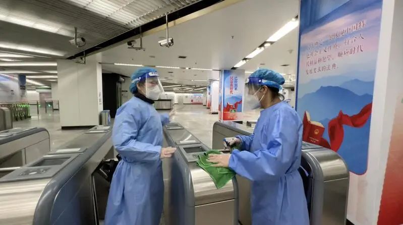 两位站长告诉记者,虽然工作、生活节奏大幅放缓,但需要他们操心的事情并没有减少,甚至还变多了。监控管理各类设施设备,应对处理突发情况,让轨交全网络保持良好状态,遇到有特殊需求的乘客还要一路小跑着过去帮忙……除了这些常规工作,茆瑞星和杨忆祖最近还多了一项工作:轨交站内消杀。“保洁阿姨基本上一小时左右就要全面消杀一次,喷洒84消毒液,用沾有消毒液的抹布擦拭座椅、栏杆等。”