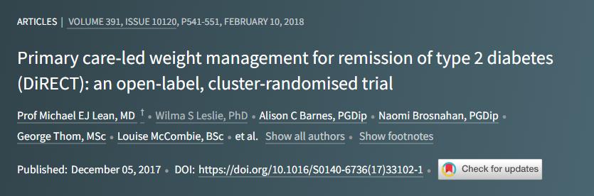2017年,他用一篇发表在顶刊《柳叶刀》的研究论文打响了减肥治疗糖尿病的第一响——这篇文章就是至今仍为学界津津乐道的DiRECT研究[2]。