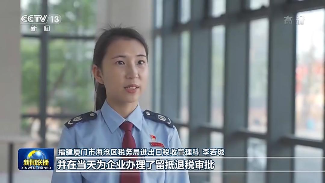 福建厦门市海沧区税务局进出口税收管理科 李若珑:我们帮助企业在一个工作日内,完成了出口退税审核,并在当天为企业办理了留抵退税审批。