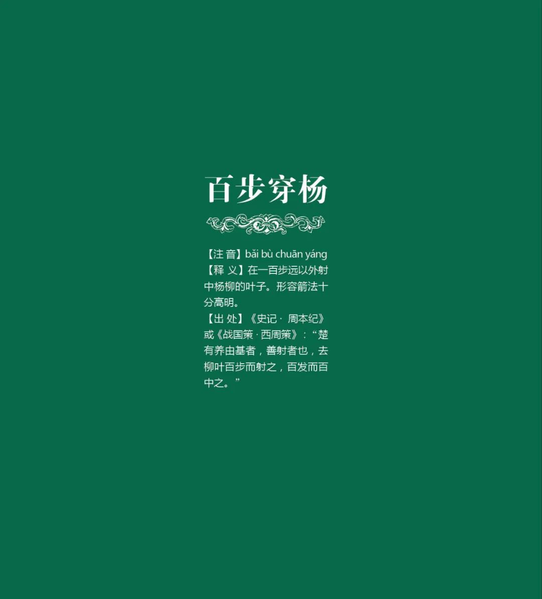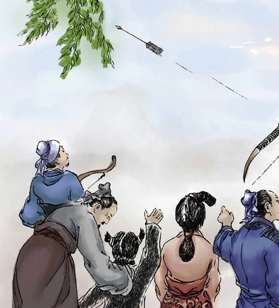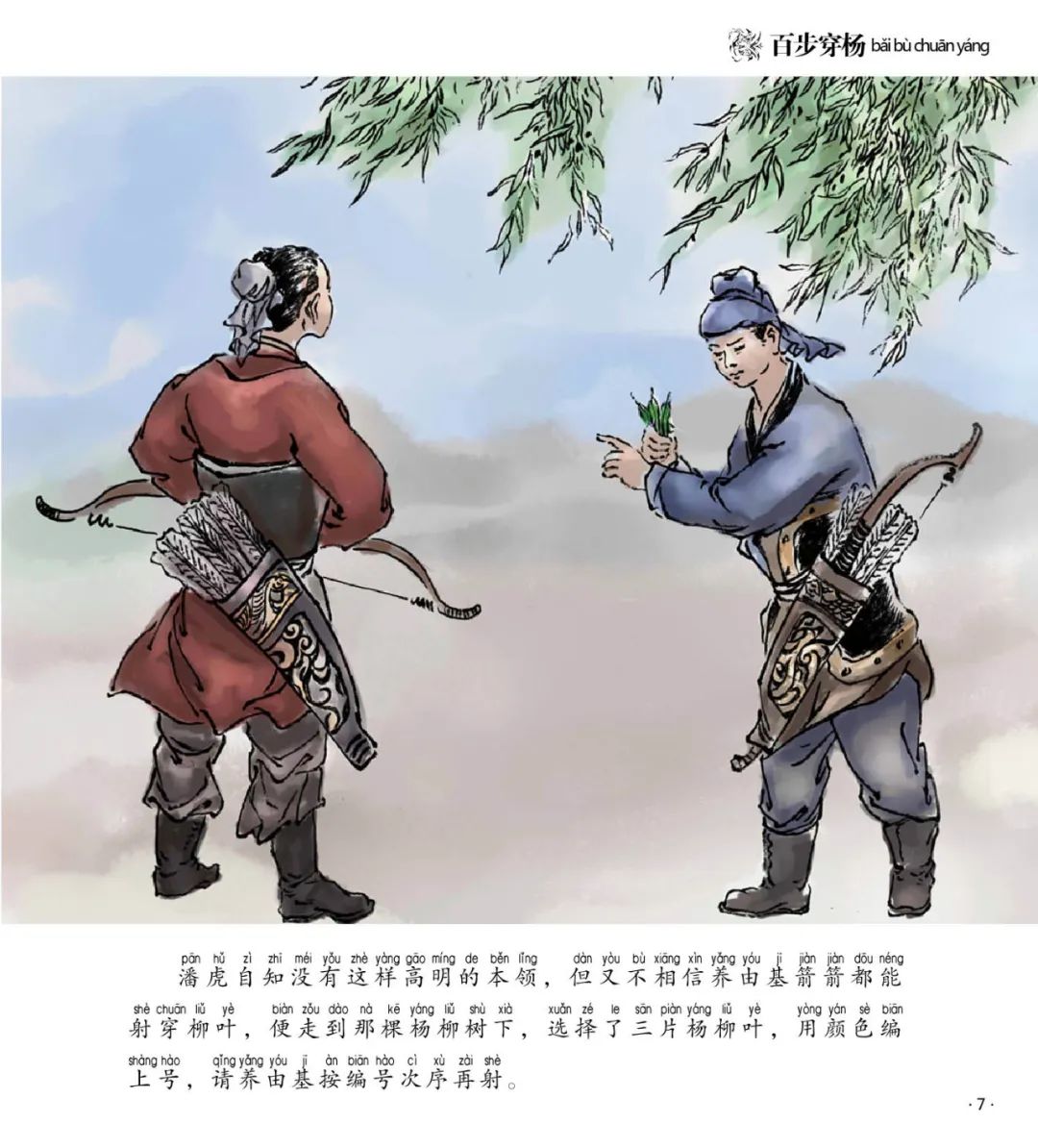 养由基走上前几步,看清了编号,然后退到百步之外,拉开弓,“嗖”“嗖”“嗖”三箭,分别射中三片编号的杨柳叶。这一来,喝彩声雷动,潘虎也心服口服。众人鼓掌说,养由基真是神人哪!点击左下方“阅读原文”,可翻阅荆楚文化数字手绘读本《百步穿杨》。