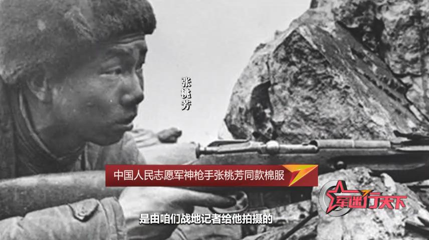 文辰身上穿着的这套志愿军军服,还真与当年的志愿军神枪手有些关联。志愿军神枪手张桃芳,当时穿的跟这套是同款。