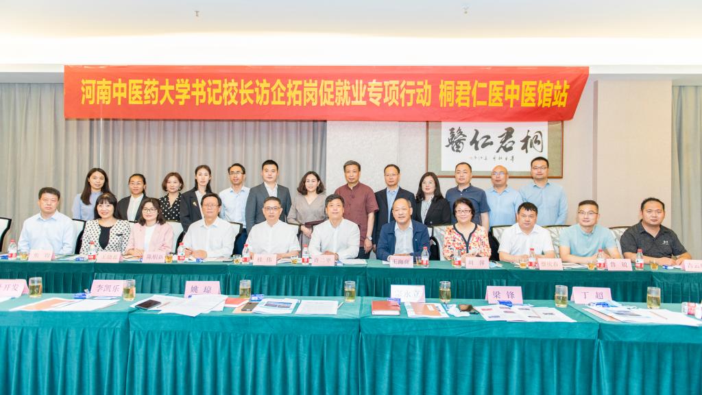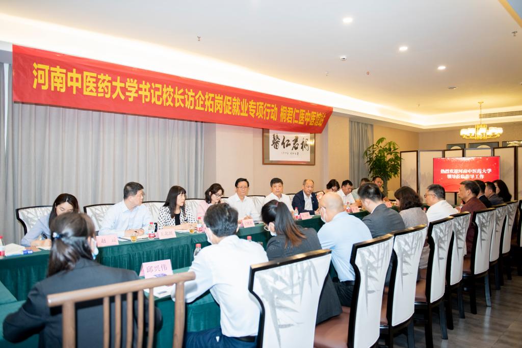 本网讯(文/王晓蕊 图/秦东仁)为贯彻落实教育部办公厅、河南省教育厅关于开展高校书记校长访企拓岗促就业专项行动的工作部署和要求,推动学校就业工作“一把手”工程落地落实,助力毕业生高质量就业,2022年4月26日下午,校长许二平带领校长办公室、招生就业处、第二临床医学院、针灸推拿学院、骨伤学院相关负责同志一行到河南桐君仁医中医馆有限公司走访调研,并与企业董事长、我校88级校友桂伟及有关负责人就2022届毕业生就业、人才培养、企业需求和校企合作等方面进行了座谈交流。