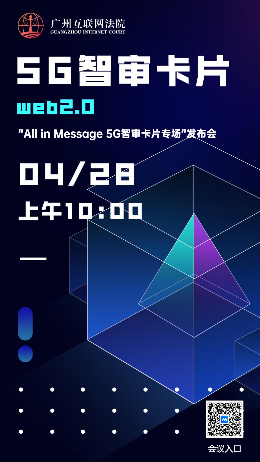 4月28日上午10:00,广州互联网法院将召开“All in Message 5G智审卡片专场”发布会,上线“5G智审卡片”web2.0版。5G智审卡片可以进一步突破时间、空间和平台限制,为当事人提供“轻·便·透·明”的在线诉讼全流程服务。