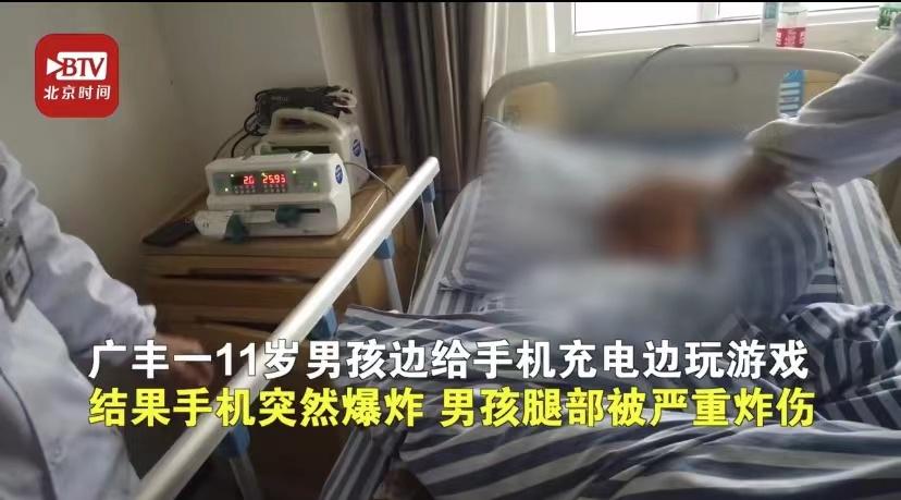 2020年12月,山西上饶一个11岁男孩边给手机充电边玩游戏,结果手机突然爆炸,腿部被严重炸伤。据了解,男孩当时把手机放在腿上没在意手机热度,结果没过多久就发生了爆炸。