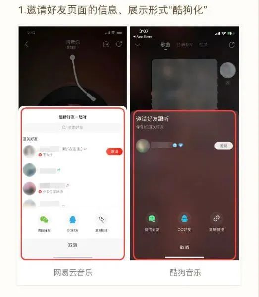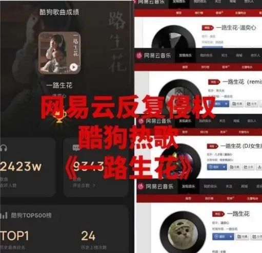 在当时公告中,网易云音乐称:“一周前,公司发现,酷狗上线’跟听’功能,对网易云音乐’一起听’的模仿到了像素级的地步”。