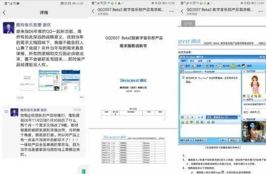随后,酷狗音乐副总裁谢欢发朋友圈疑似回应,“原来我2006年做的QQ一起听功能,竟然有如此深远的战略意义。找到当年的需求文档回味下,我能不能告别人山寨我了呢?另外当年写的需求真是详细,所有的逻辑和交互图必须做出来,要不会被研发骂回来……那时候产品经理挺没人权。”文中,谢欢还贴出了2006年至2007年间写的产品需求文档截图。