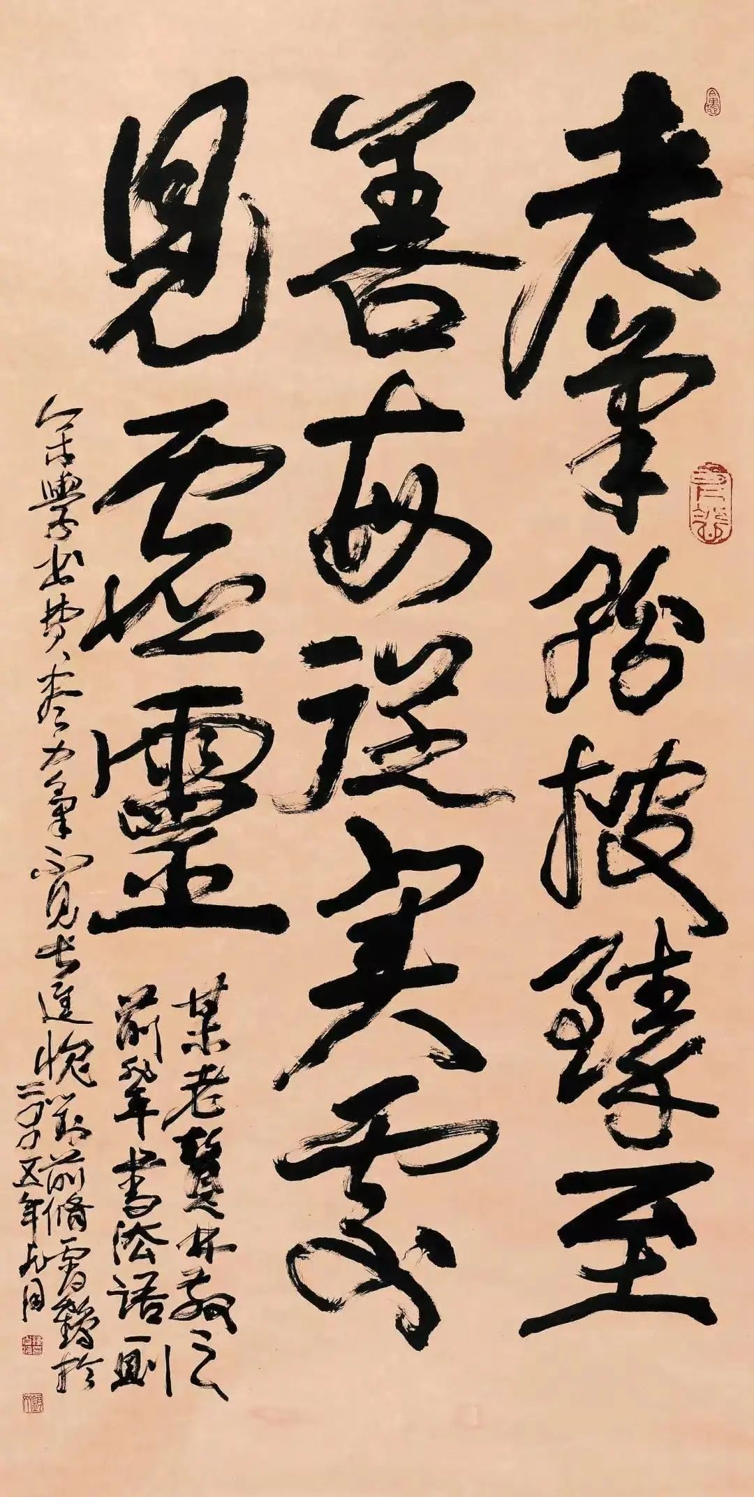 2005年9月,年近八十的练霄鹤在对前人书法不断心追手摹时,被这句用来赞叹林散之的评语感慨不已。挥笔写下,并在跋语中谦逊地表示:余学书费尽力气,不见长进,愧对前修。