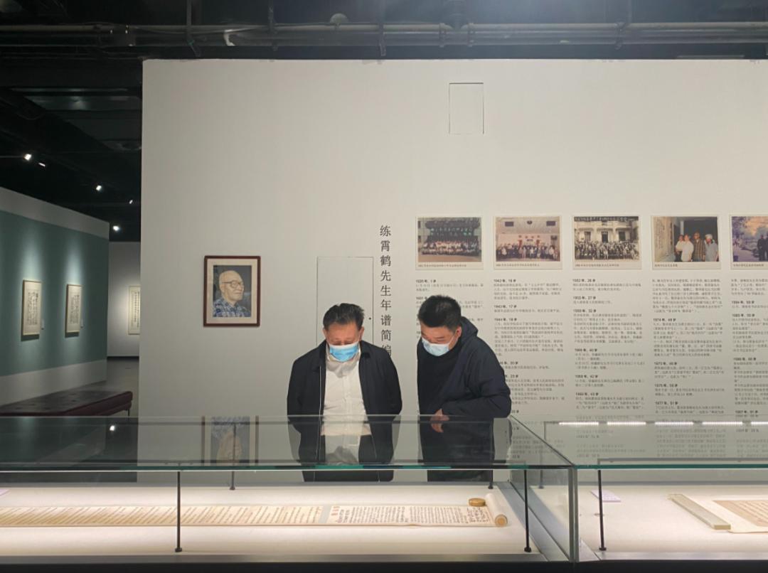 中国书法家协会副主席、湖南省文联主席、湖南省书法家协会主席鄢福初细看练霄鹤书法展文献展柜