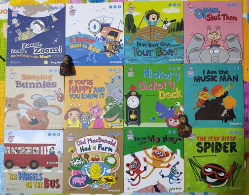 这套书是Usborne出版社出品,共分两辑,每辑6本纸板歌词书,6本故事贴纸书,还附带钢琴卡等小教具,支持毛毛虫点读笔。