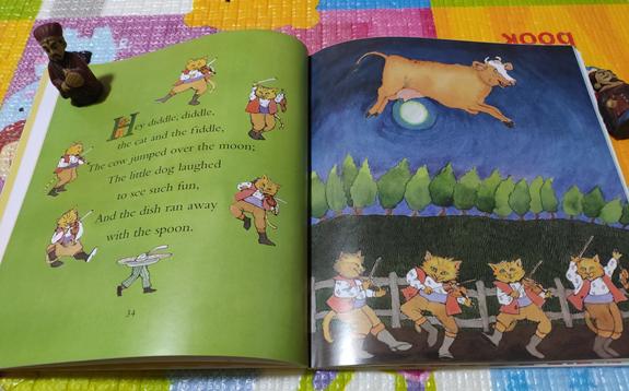 以上两本书就是风靡英国数百年的鹅妈妈经典童谣,历史悠久,流传广泛,语言结构比较工整规律,篇幅大都短小精悍,一篇童谣循环听几次就能学会。其中内容也包罗万象,可以从中学习了解很多英国的历史文化,同样支持毛毛虫点读笔。