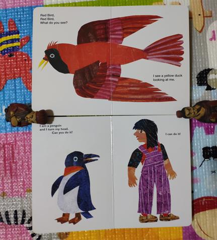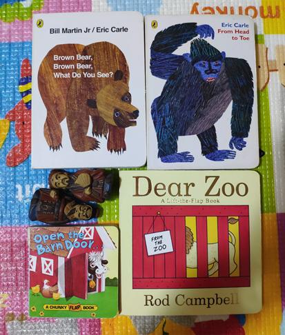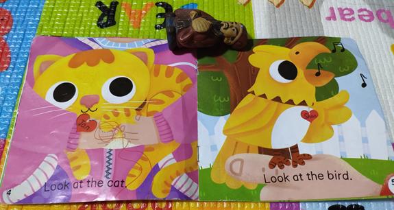 这个阶段,适合宝宝的绘本不算太多,最好是不怕撕的硬纸板书,词句简单,可以有翻翻页和小机关。大部分绘本的词句比较复杂,比较适合有一点英语基础的宝宝看。
