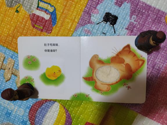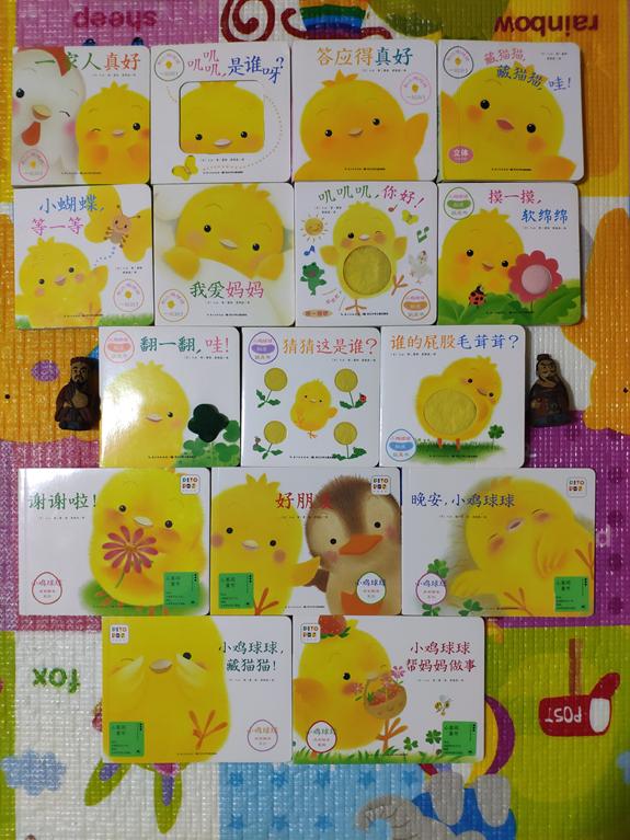 《和小鸡球球一起玩》和《小鸡球球触感玩具书》这两套都是纸板书,开本不大,小宝宝也能翻。
