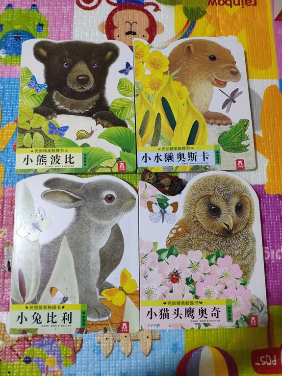 这套书引自意大利,中英双语,每页都有可爱的洞洞,可以激发宝宝的好奇心,锻炼宝宝手指的灵活性。但是画风有点奇怪,里边的小儿歌翻译得也不押韵,还有改进的空间。