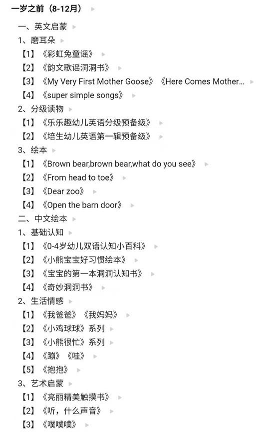 先放上一张娃一岁左右读过的简版书单��