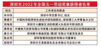 深圳获得2022年广东省五一劳动奖章的30人是:
