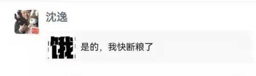 然而很快,这个“大家都不要和他玩”在传播中就演化为了“大家都不和他玩了”。而且加入了新人物——张维为。加入了新剧情——沈逸曾经转发过一个人写的一篇文章(注意,是别人的文章),标题是“是的,我快断粮了”标题图里有一个关键字“饿”: