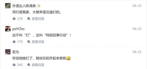 比如我随便找一些知乎这个网站上相关问题的评论区(就是上面提到的封闭社区中立场先行的狂欢),全部都是抛开了事实的阴阳怪气和幸灾乐祸,偶尔有一条“就靠一个微信截图,加一张网上找的他的个人照片,就能编造一条新闻”的中立声音早已被一堆暗号式的话语和侮辱性的P图“大字报”所淹没: