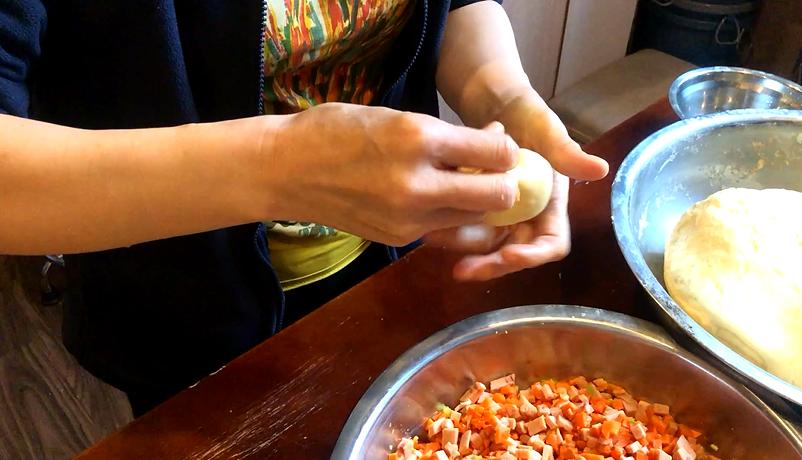 “今天残联送来了胡萝卜和午餐肉,我今天晚上就做一个家乡的江西特产小吃,油炸粑粑。”