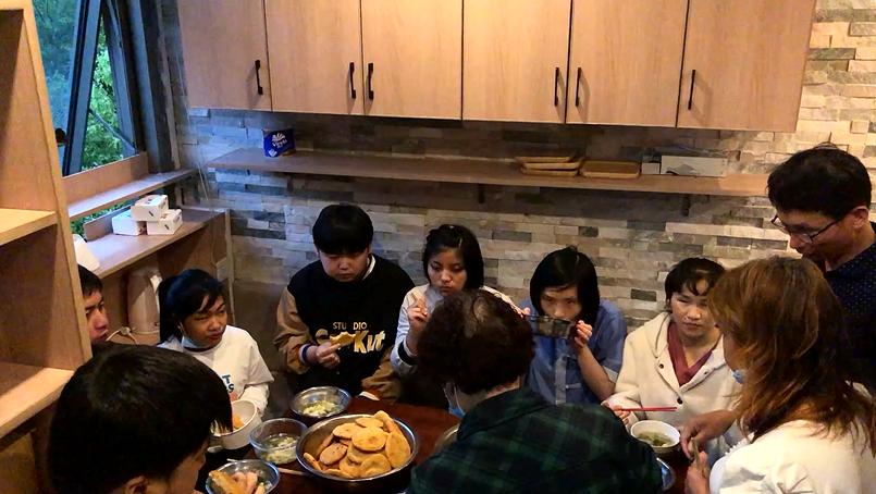 黄正凤告诉记者,自己老家一般是在过年过节的时候才会做油炸粑粑,“收到了残联送来的物资后心情像过年一样,所以就做这道美味了。”