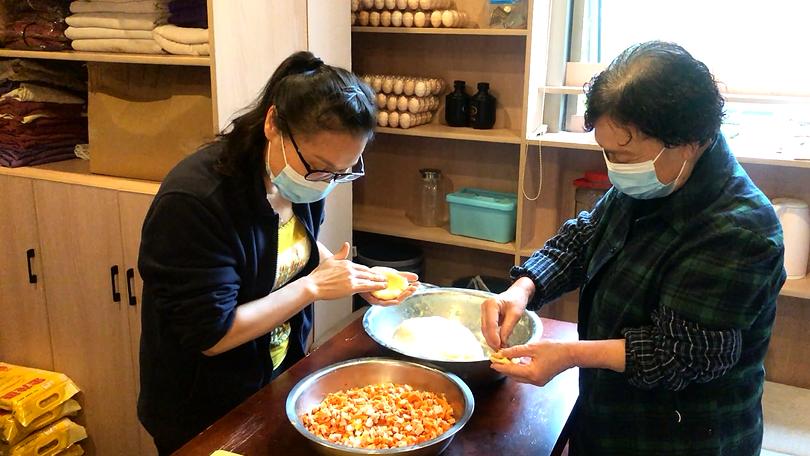 4月28日上午,上海市残联和宋庆龄基金会联合爱心企业,给感智盲人按摩店送来了大米、鸡蛋、蔬菜、罐头和食用油等生活物资。收到这批爱心捐赠,来自江西的按摩技师黄正凤立即提议跟烧饭的阿姨一起,做一顿家乡的美食。
