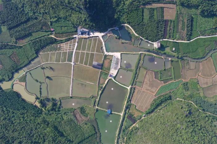 这是柳州市柳江区里高镇板六村螺蛳养殖基地(无人机照片,2021年6月6日摄)。新华社记者 黄孝邦 摄
