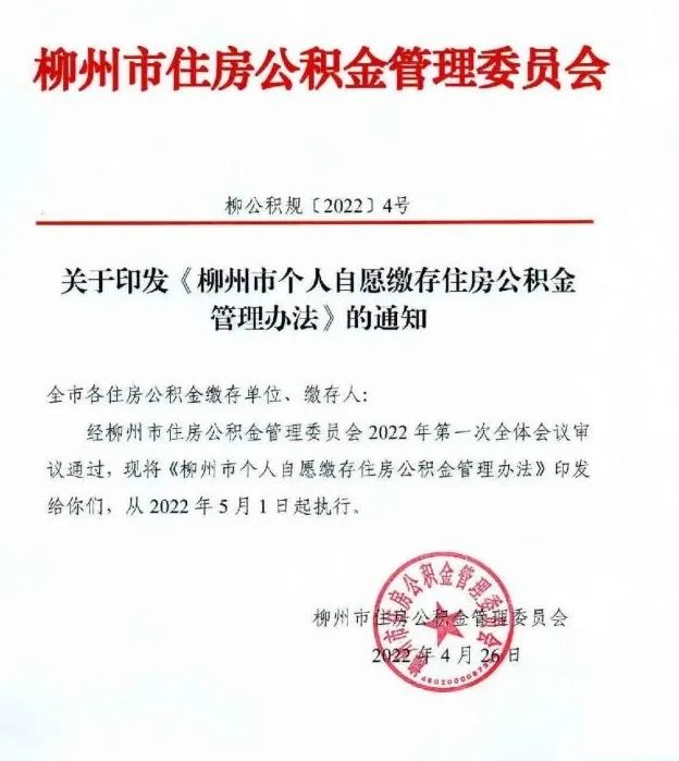 市住房公积金管理委员会印发《柳州市个人自愿缴存住房公积金管理办法》的通知