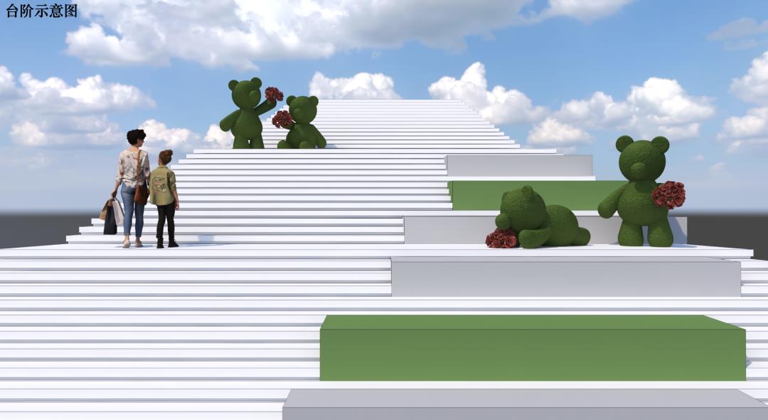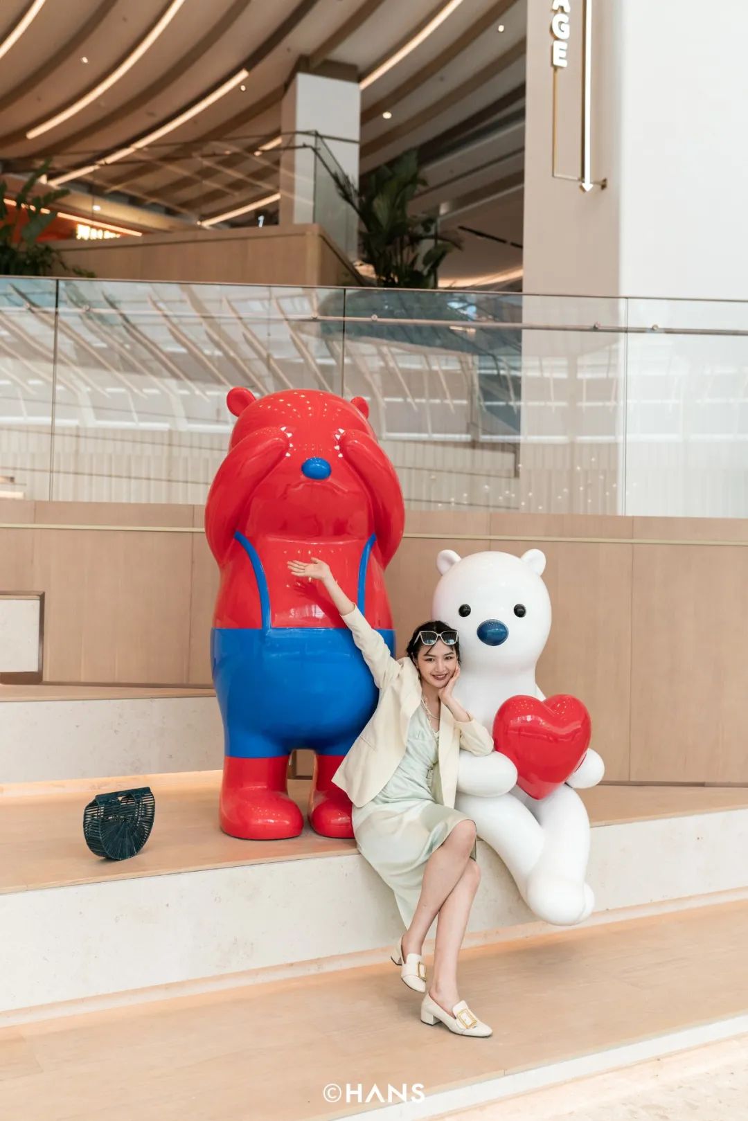 来自当代艺术家张占占的代表作——「PUPU 熊」,错落有致地伫立在层层叠叠的台阶之上,等待着给你一个治愈熊抱。