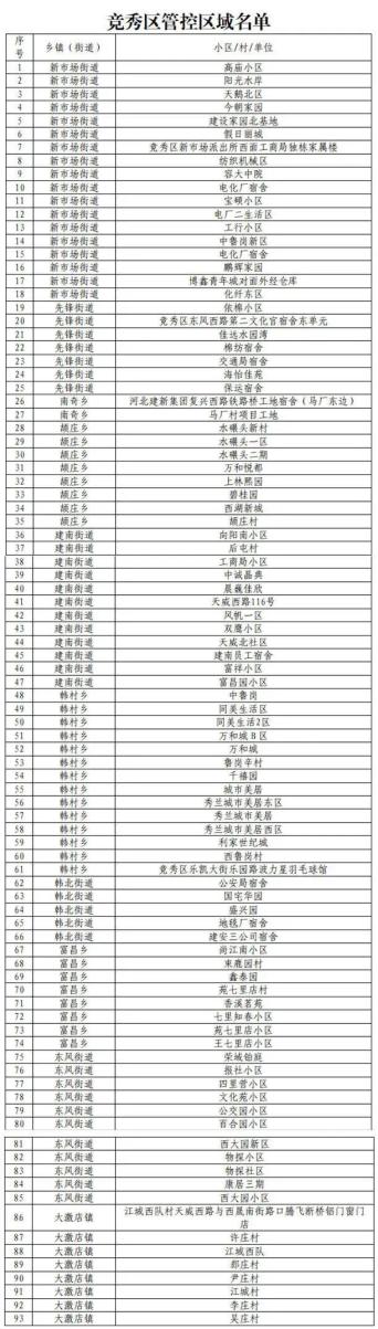 2.竞秀区管控区域名单