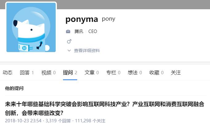 另外,在翻小马哥的知乎账号时,差评君还发现了一个小彩蛋。