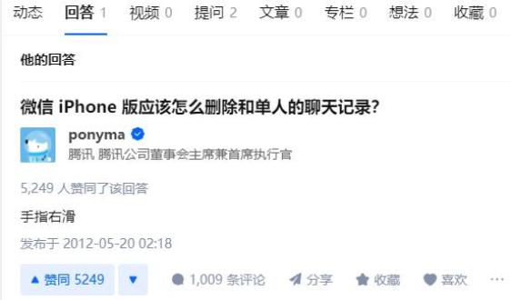 那就是马总的第一个知乎回答,献给了“ 如何删除微信聊天记录 ”这样的问题。