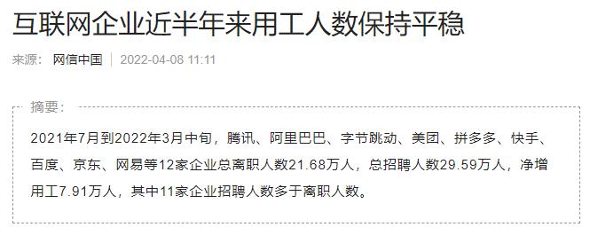只不过有趣的是,相关部门去了解了下情况,结果得到的数据却是。。。大厂们的用工规模还变大了。