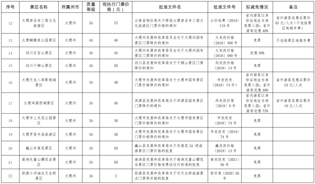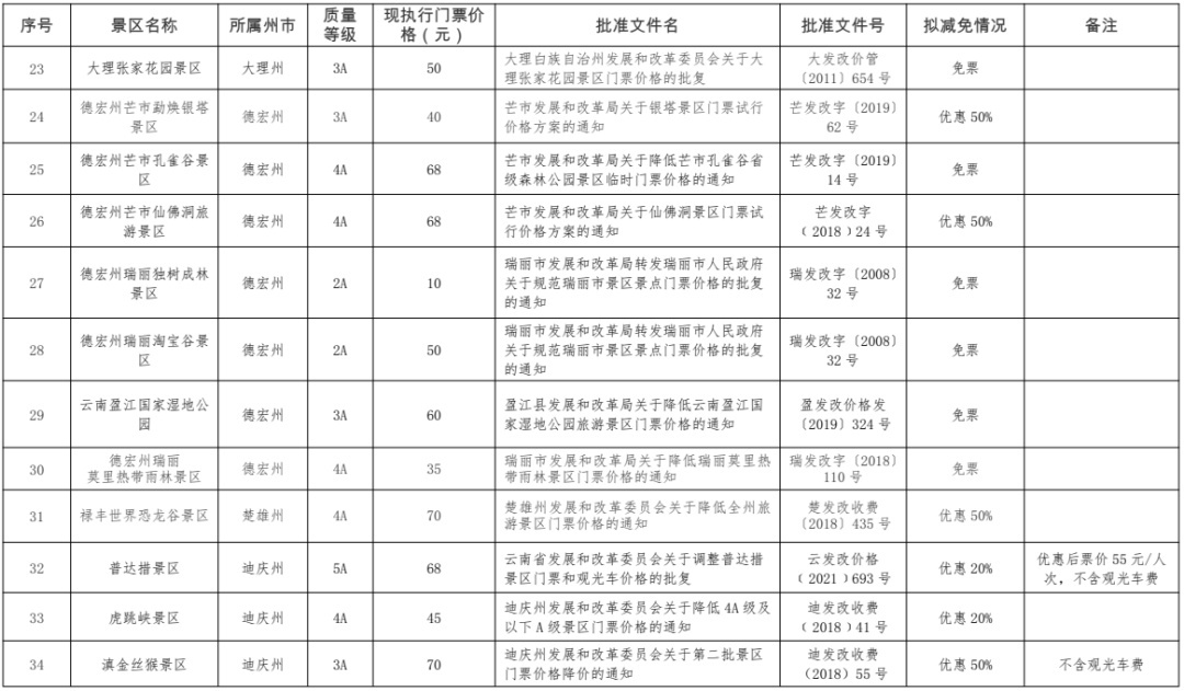 此举是为精准做好“鼓励执行政府指导价的A级旅游景区开展门票降价促销活动,由省财政按照减免额度给予50%补贴”工作,经各州市文化和旅游部门初审上报自愿参加活动的景区名单,省文化和旅游厅会同省发展改革委物价管理部门审核,对实施门票减免的73个旅游景区名单及门票价格予以公示。公示截止日期到2022年5月20日。