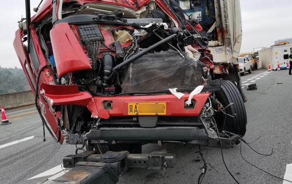 2辆大货车发生追尾事故