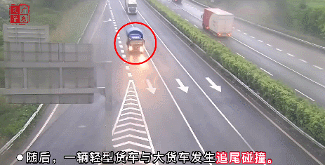 1分钟后,第3辆大货车再次追尾